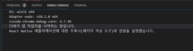 - 어플리케이션 실행 - VS CODE Debug Tab - Attach to packager 선택 - Start debugging 실행