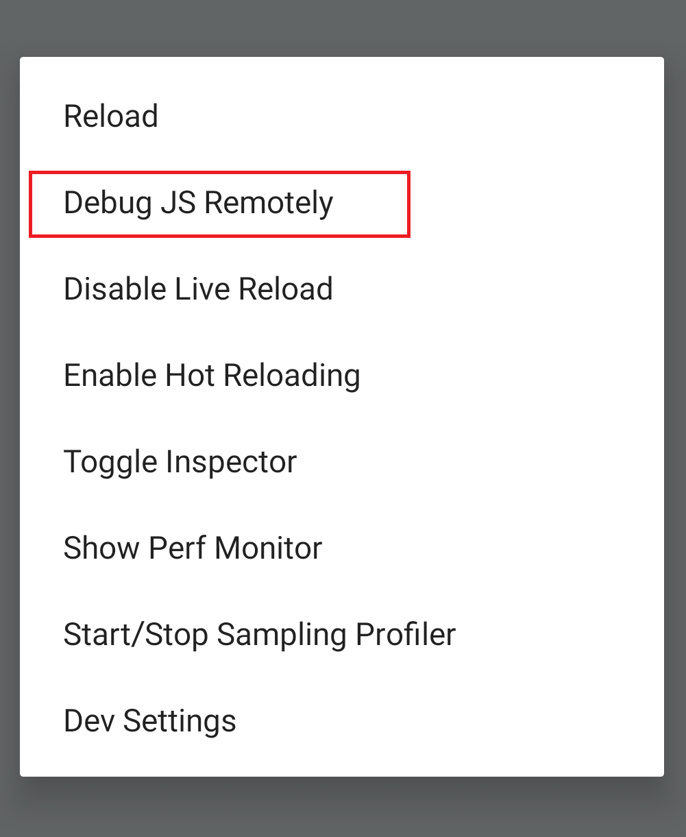 - 어플리케이션 메뉴 - Debug JS Remotely 선택